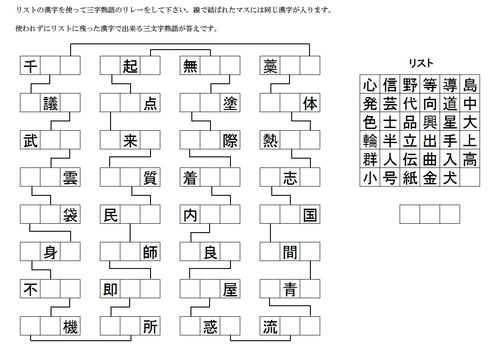 三文字熟語リレー75 白の四角黒の四角