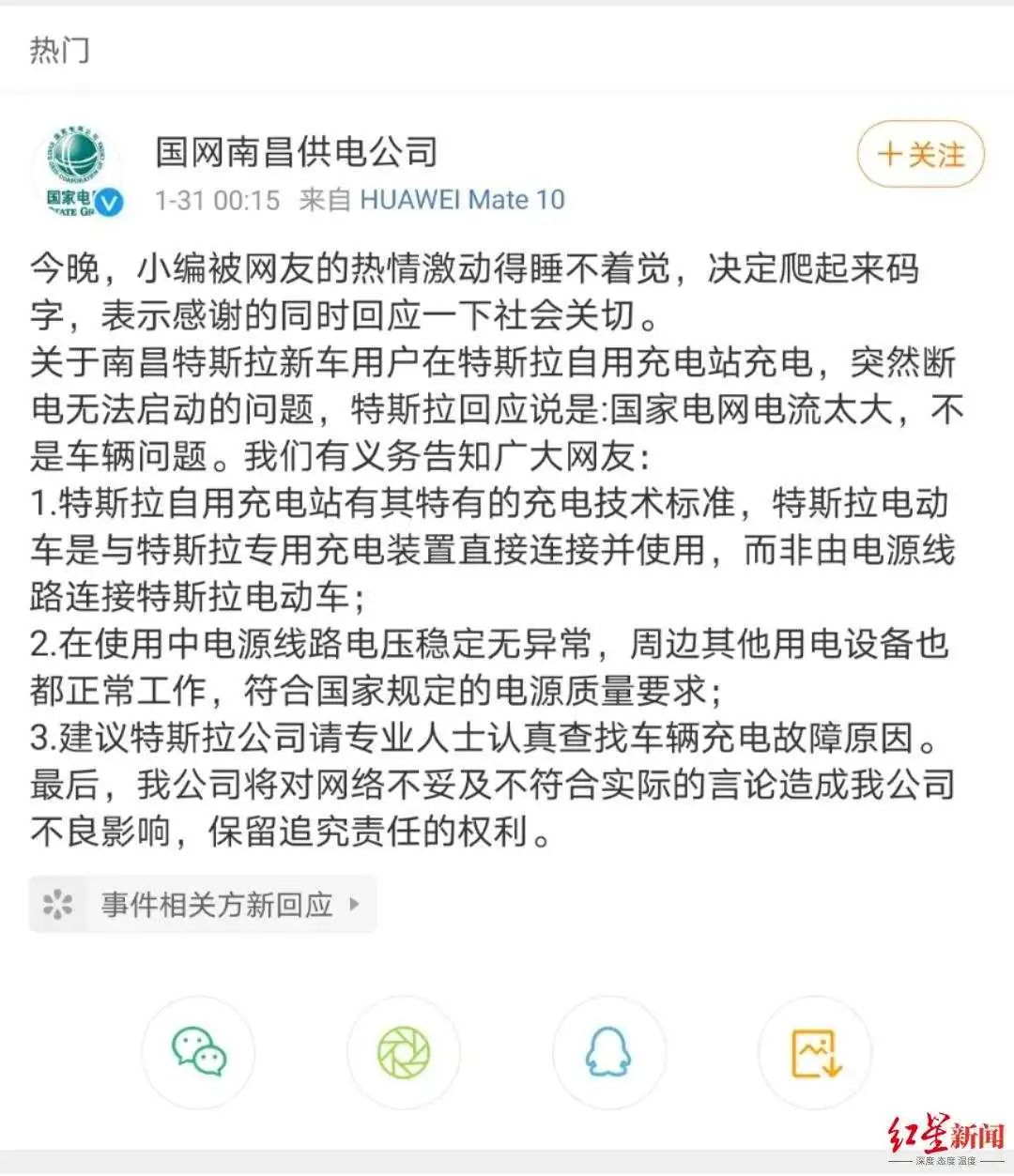 充电之后秒断电 特斯拉想 甩锅 国家电网正面刚 新闻