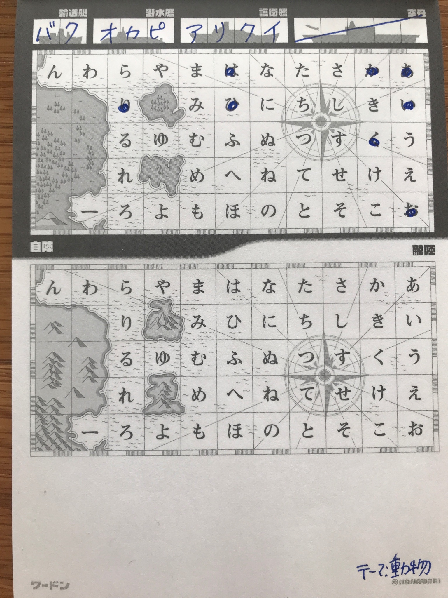 ナナワリ Co Nanawari على تويتر テーマは動物 2 4文字 こちらの戦艦は バク オカピ アリクイ です 先攻で初撃はイヌの可能性潰しと真ん中辺の情報を狙って ぬ