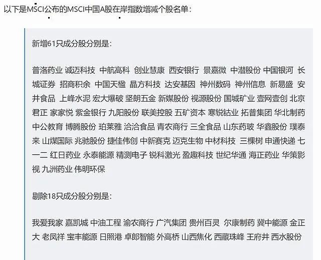 这些股民要笑了 刚刚宣布msci中国a股在岸指数增加成份股61只 东方财富网