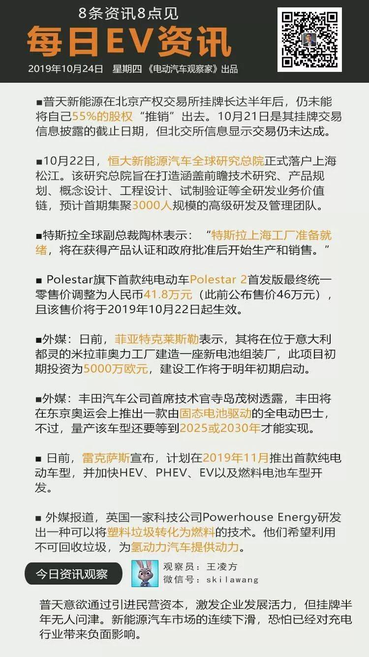每日资讯 普天挂牌半年未售出股权 恒大新能源全球研究院揭牌 特斯拉上海工厂准备就绪 有车以后