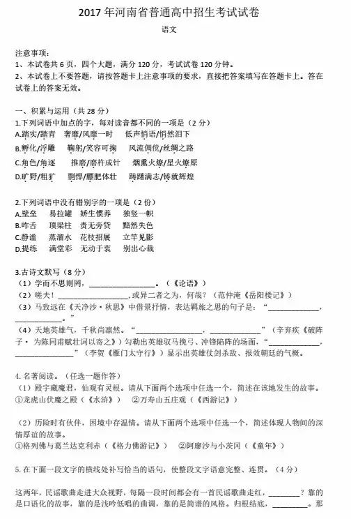 2017年中招考试语文试题及答案详解 教育频道 手机搜狐
