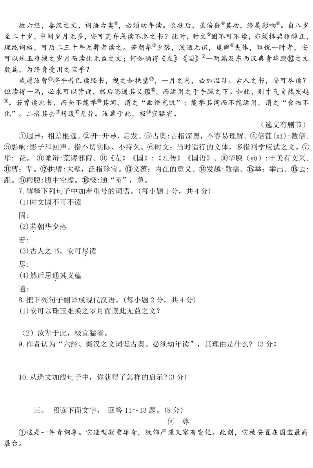 2017中考语文答案来啦 专家说 难度适中 个别题目有良好区分度