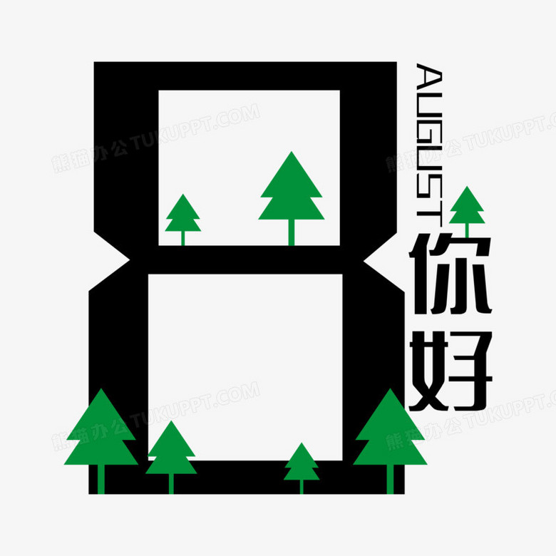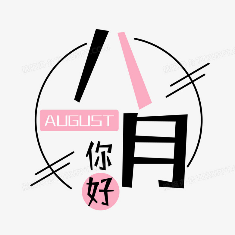 简约创意8月你好文字排版字体排版设计png图片素材免费下载 简约png 3000 3000像素 熊猫办公
