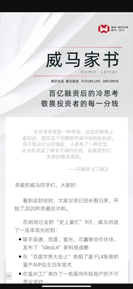 威马汽车一封家书的背后 纸短 决心 长 腾讯新闻