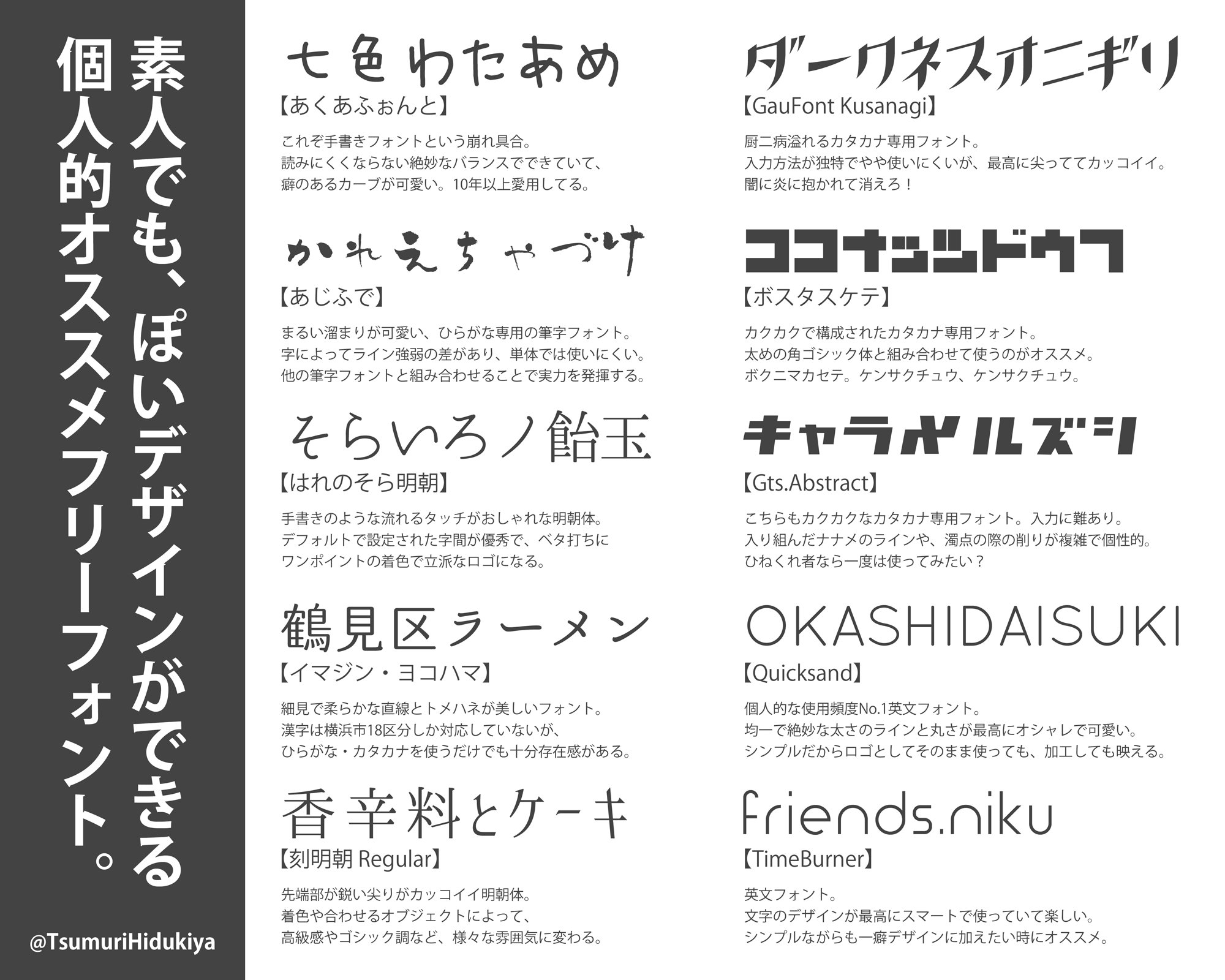 火月夜つむり On Twitter 要望あったので おすすめのフリーフォントをまとめてみました 好みでめっちゃ偏ってますが よかったら参考にしてください 基本的に商用利用可能なものばかりですが 各フォントの利用規約をよく読んでから使ってください