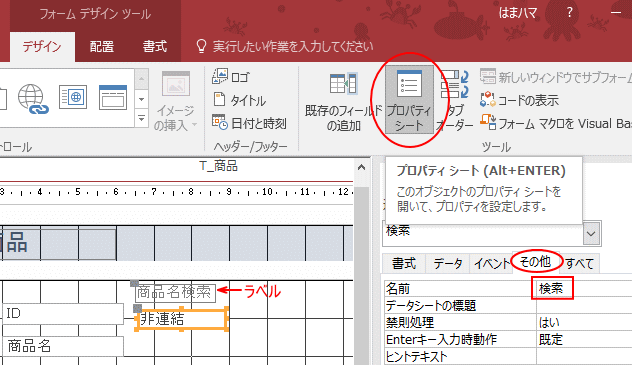 Access テキストボックスに入力した文字列で検索するフォームの作成