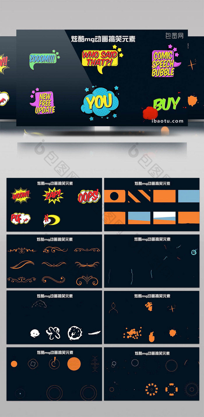 Ae模板 六套手绘卡通漫画流体爆炸能量元素文字标题mg动画工具包 Cg资源站